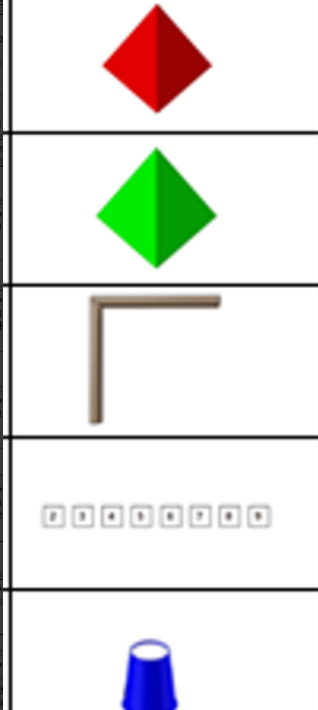 2026年A类小学竞赛场地纸*1;30mnEVA三棱锥:红色*7个、绿色*7个;阻碍条(长度400mm与380mm;宽度均为20mm,高度均为40mm)一组;卡纸(0-9)一套8张;一次性纸杯(蓝色)2个;围栏一套;