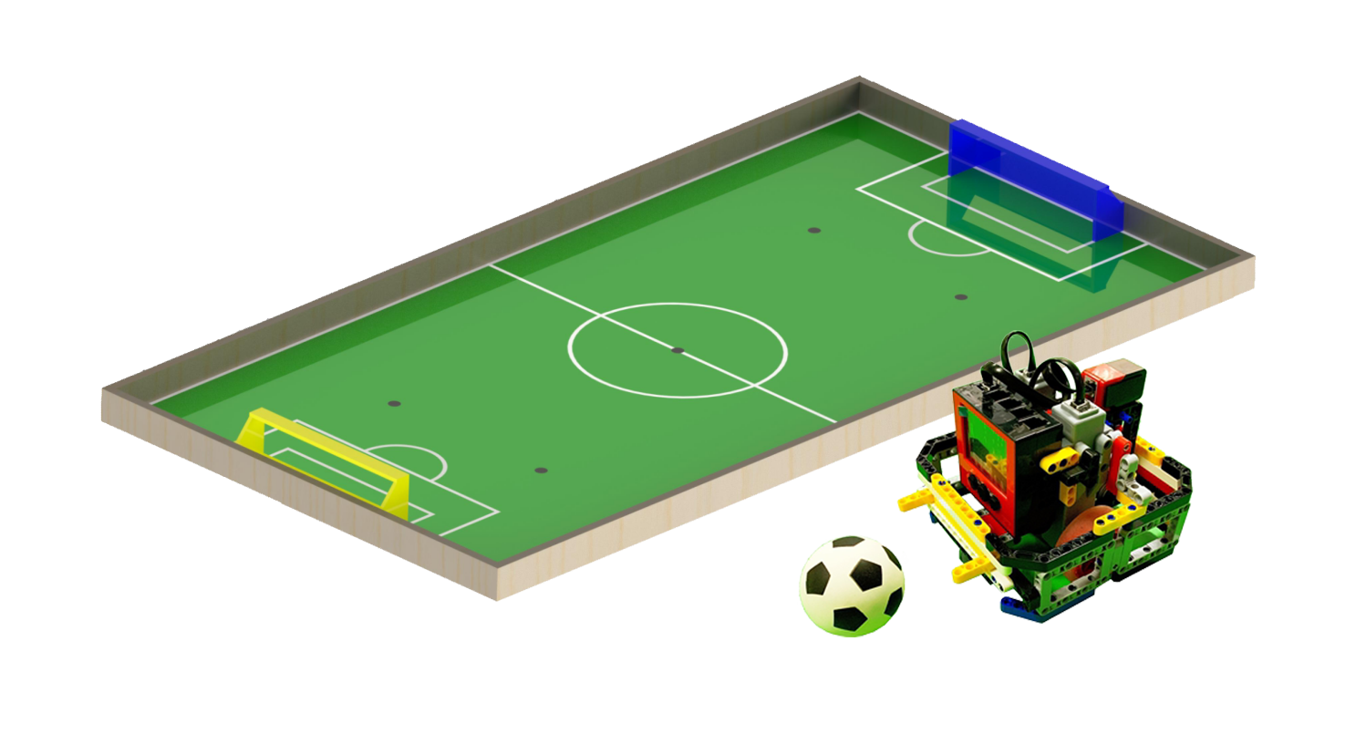 标准的积木式机器人挑战赛场地底板与围板,包含32块底板、20块围板、4块转角围板。所有底板、围板尺寸及孔距都以8mm为基本单位,可以与乐博士等国内外积木有效拼插。场地尺寸1200mm*2400mm.木制门框+道具足球。